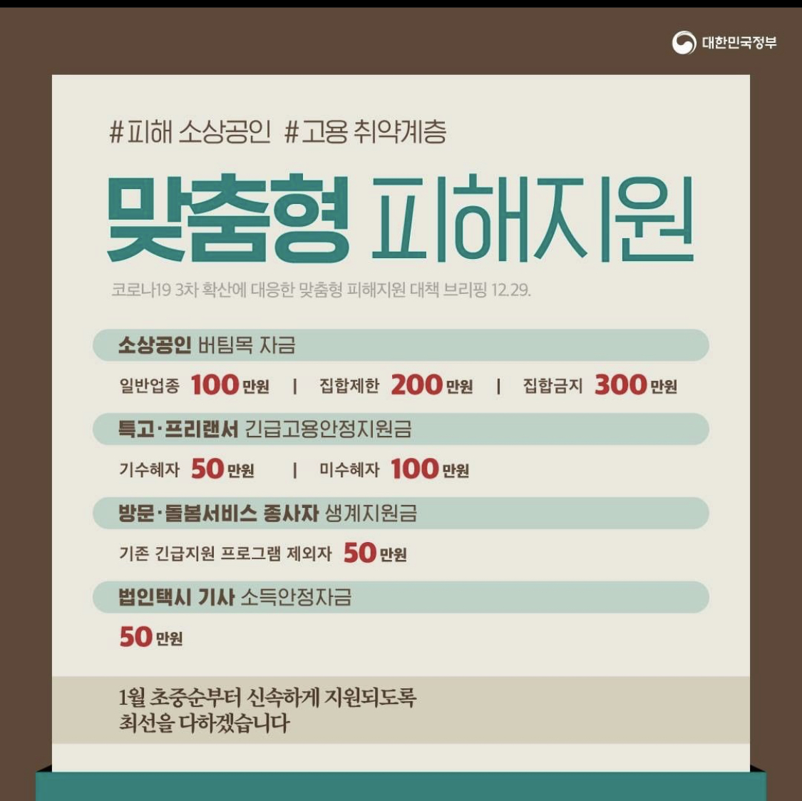| 특고, 프리랜서, 소상공인, 자영업자 3차 재난지원금 신청방법과 신청일시는? (1) | 2021.01.02 |