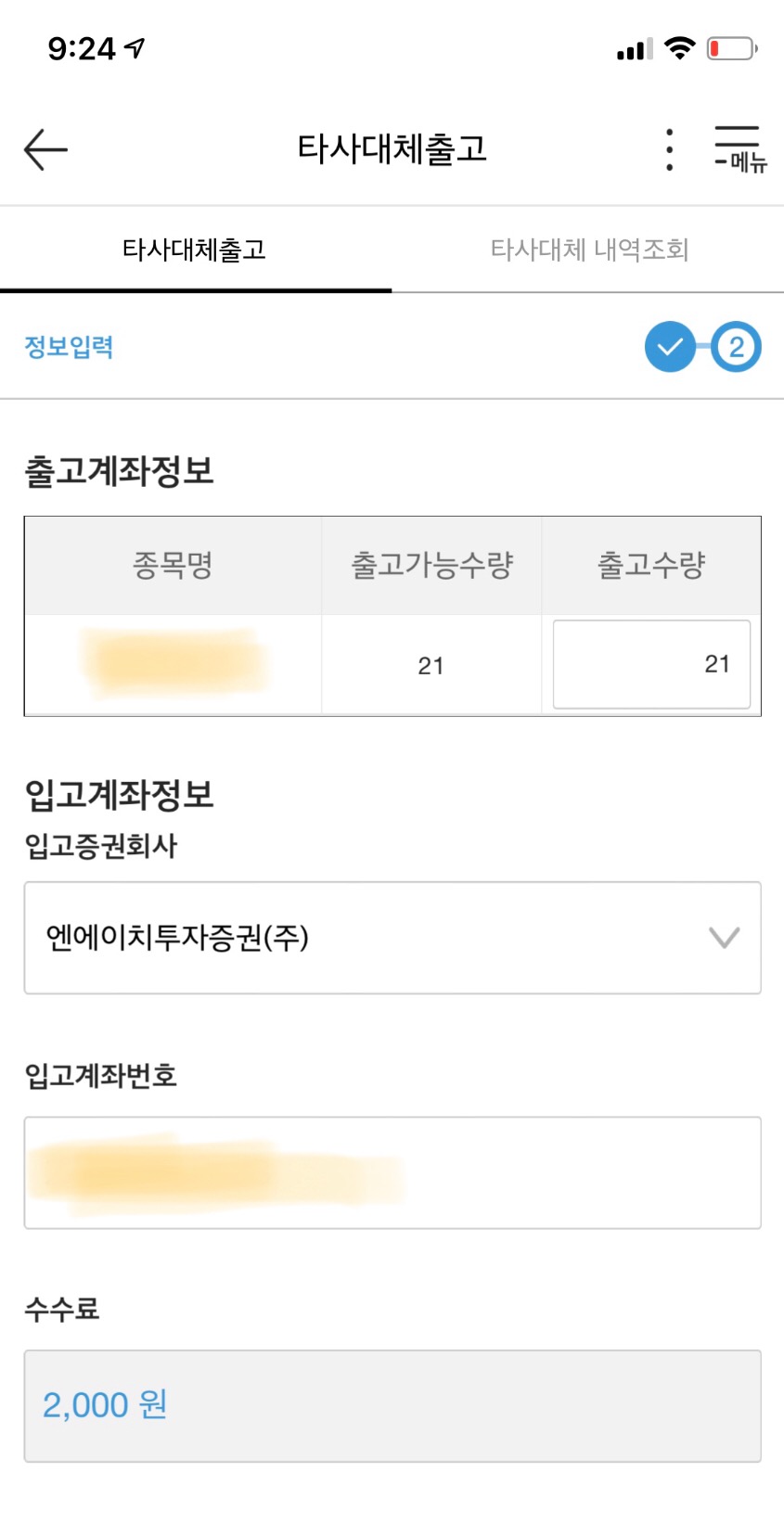 일단, 신한금융투자는 타사로 주식을 출고할 때