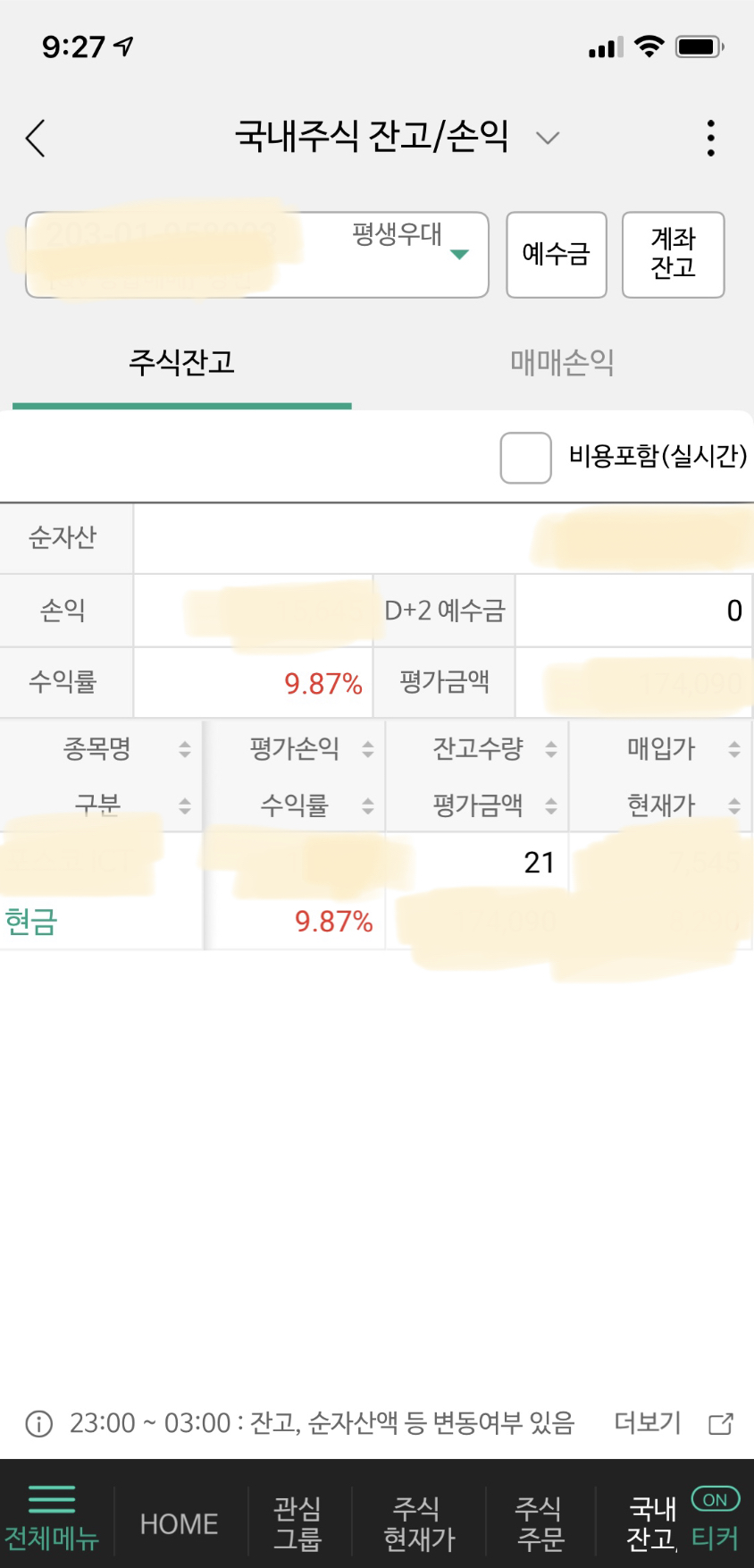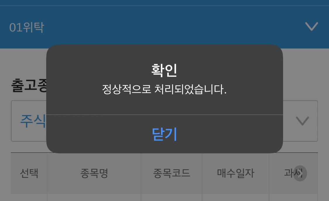 확인 후, 확인버튼 (*이때 수수료가 예수금에 있어야해요. 증권사 통째로 옮기실 분들은, 주식먼저 옮기고 예수금은 그 후에 옮기시길 바래요!*)