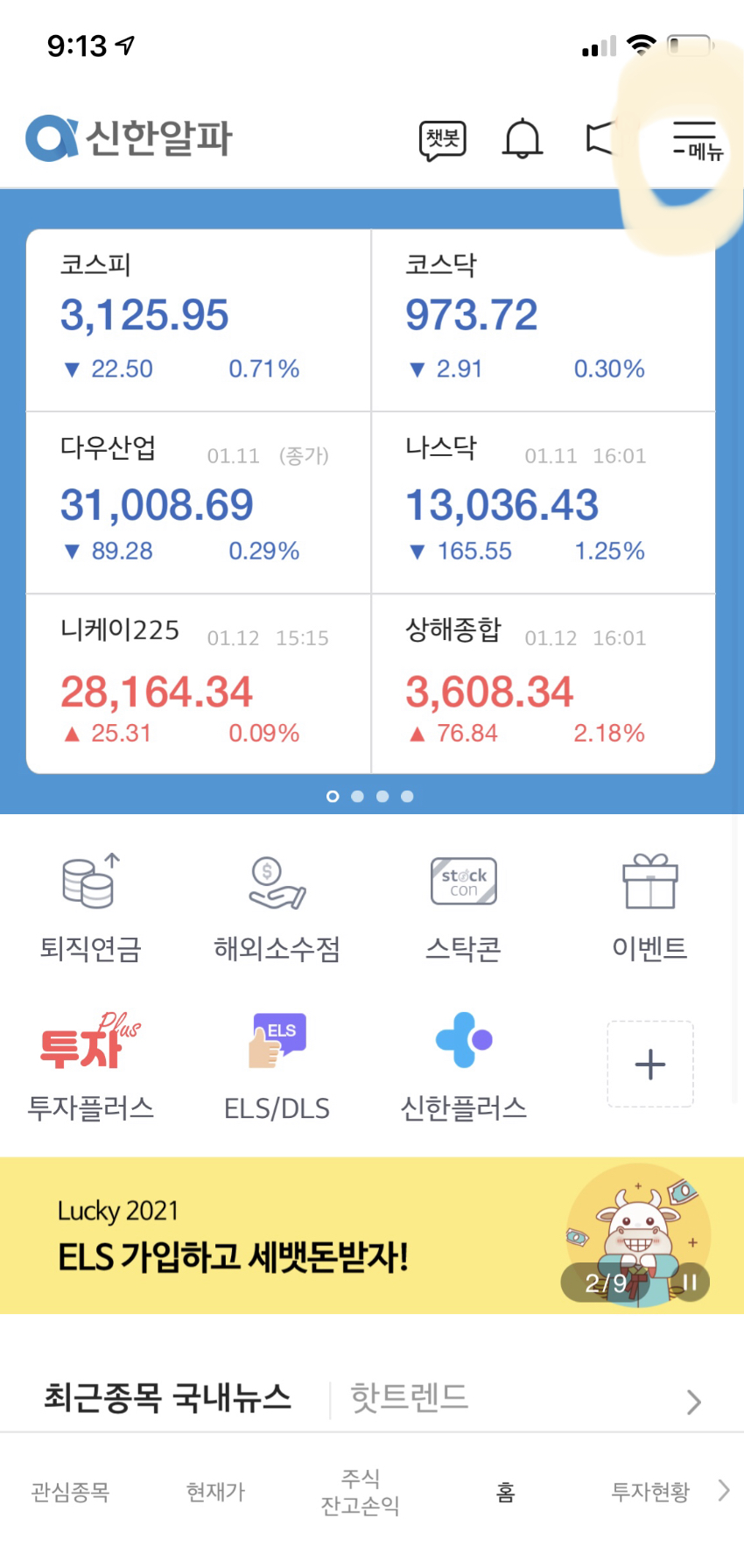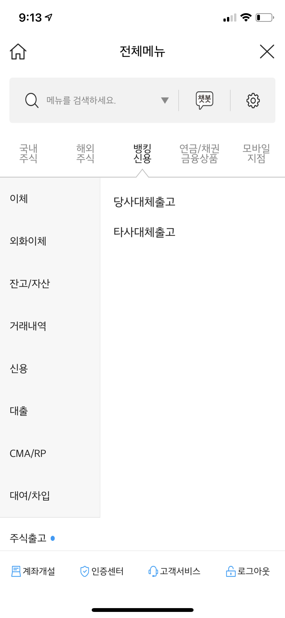 2. “뱅킹신용” ———>> “주식출고” 클릭