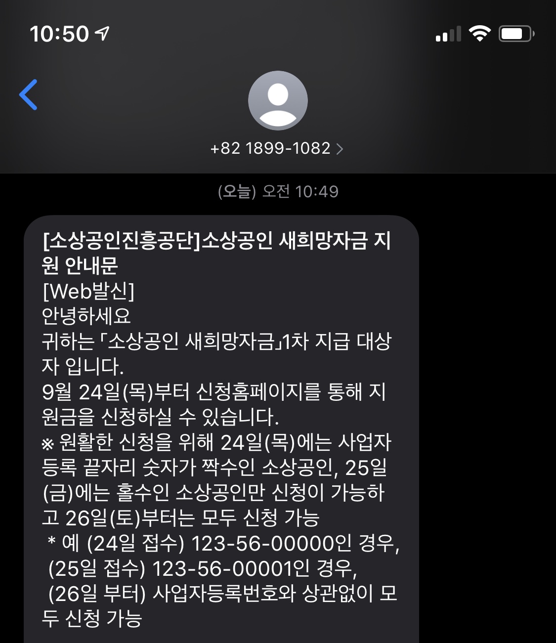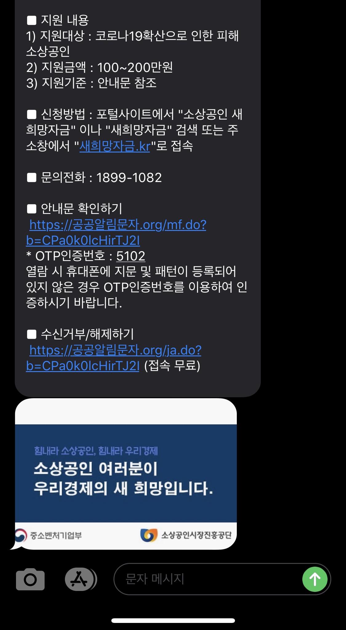 오늘, 소상공인 새희망자금 지원 안내문자를 받았다.