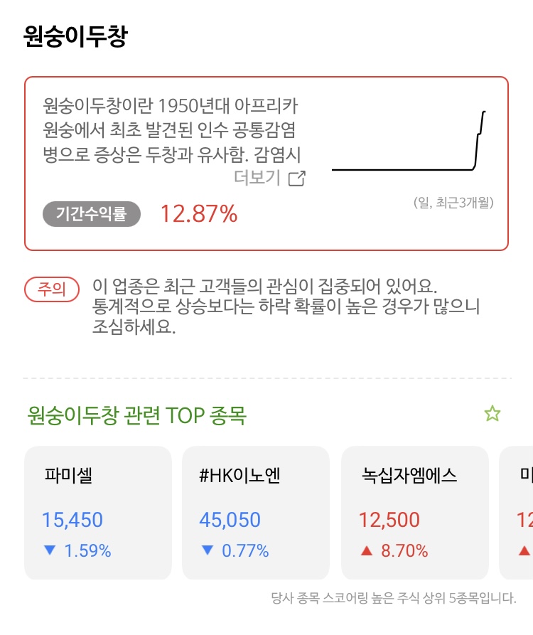 관련주_원숭이두창 관련주로는 천연두 관련주로 꼽히는 파미셀, 시가테크놀로지스 등이 있다고 한다.
