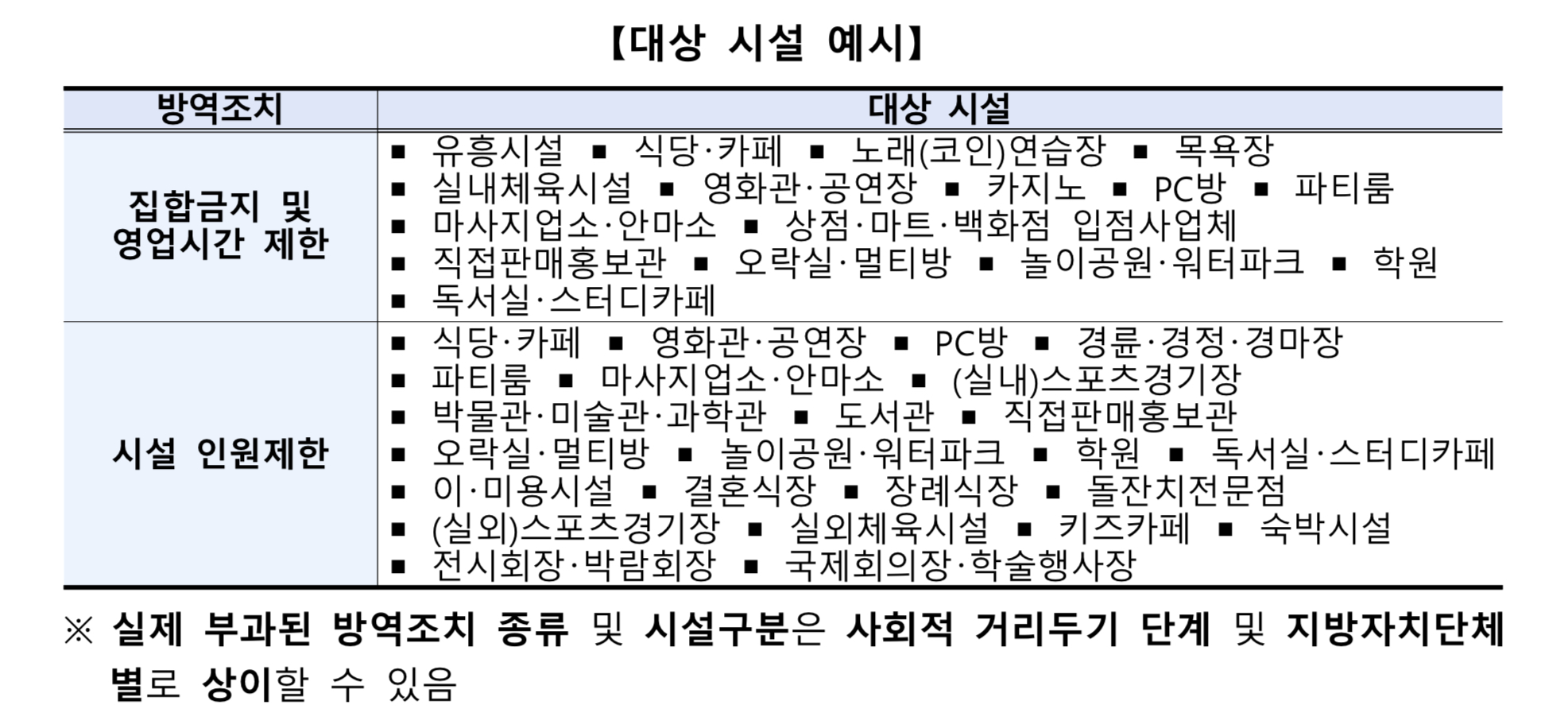 *방역조치 : 중앙재난안전대책본부 또는 지방자치단체가 시행한 방역조치로서 집합금지, 영업시간제한, 시설인원제한