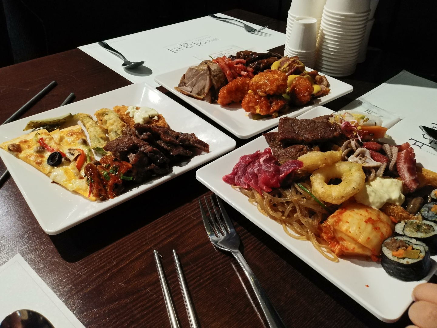 생고기, 생선회, 초밥, 김밥, 롤, 핫플레이트 요리등등