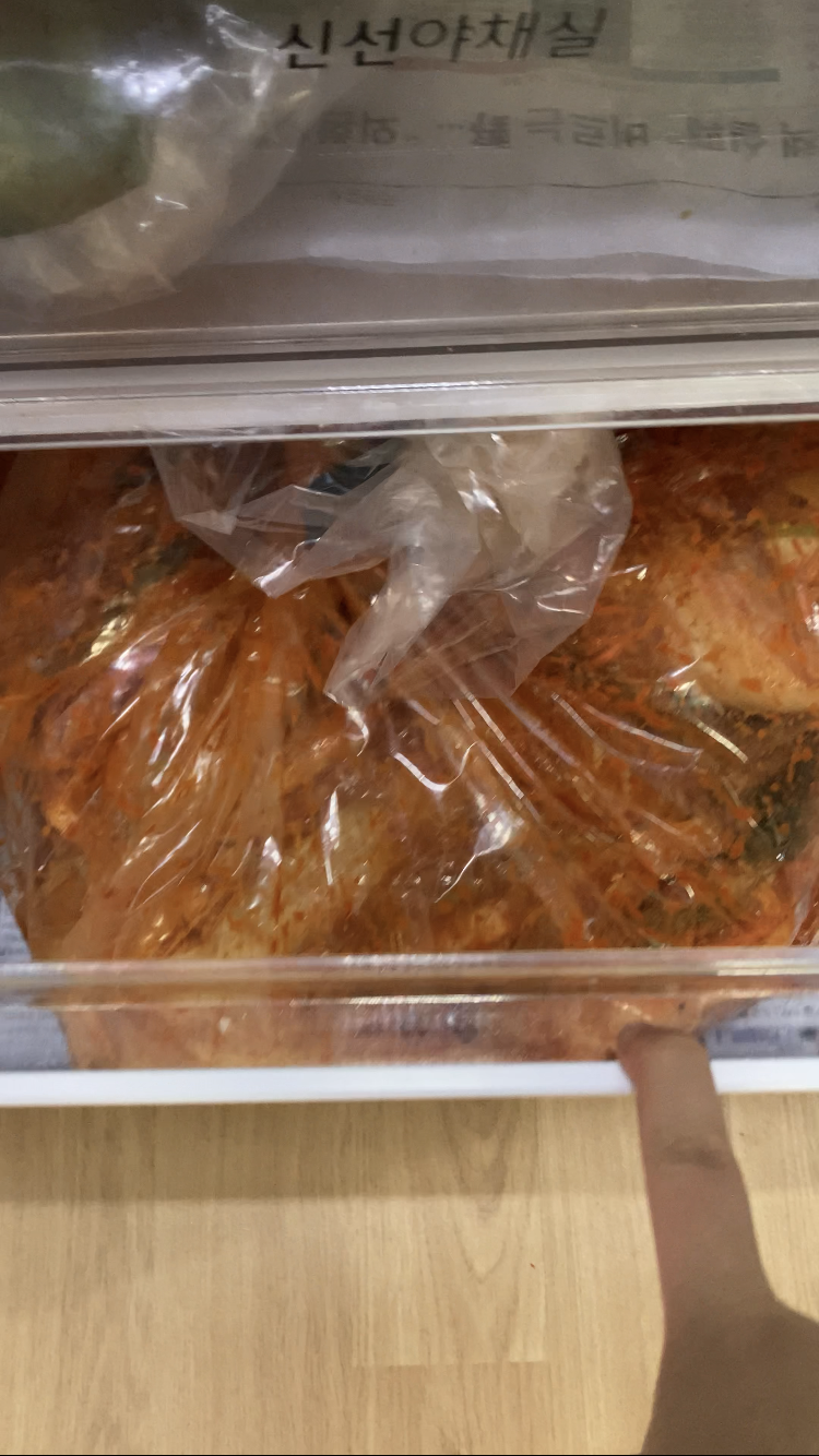 야채칸 두 칸 중 한칸을 배추김치를 넣어 보관해버리기 ㅎㅎ