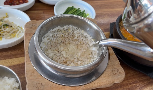 밥을 덜어내고 숭늉물을 부어둡니다.